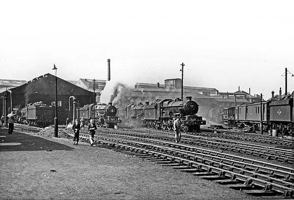 ![]() Stafford Road Locomotive Shed seen on 11 October 1933. In the foreground is Dean 'Barnum'