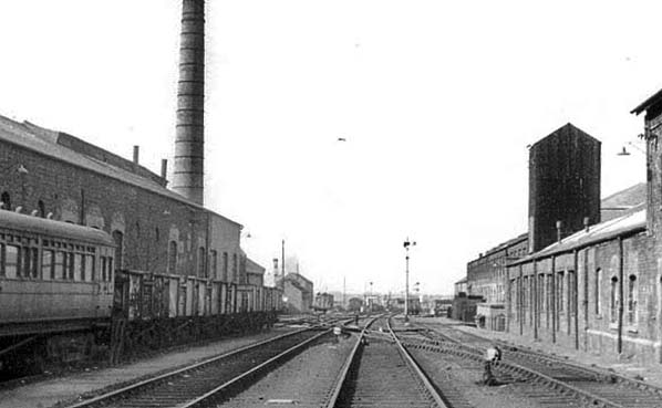class 2-4-0 locomotive number 3223. ![]() ![]() Looking west at Stafford Road Locomotive Depot in the 1950s. Photo from the John Mann collection ![]() Copyright photo from the Geoff Dowling and John Whitehouse collection ![]() The Stafford Road Works was located on both sides of the Victoria basin line which had been the main line of the S&B into Wolverhampton between 1849 and 1854. This view looking north in September 1963 from the branch shows the older buildings of the works.