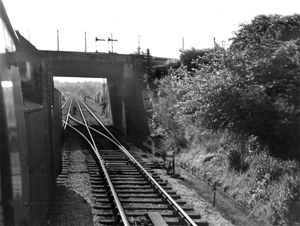 ![]() Transporting Saturday shoppers home from a day out at Preston Market in July 1963, Stanier 2-6-4T No. 42494 heads the 5.30 pm Preston - Southport over the pointwork at Whitehouse West Junction and underneath the 6 tracks of the West Coast main line. The triangle here proved to be extremely useful for turning locomotives of trains arriving at Preston, particularly when the more circuitous route between Todd Lane Junction and Farington Curve Junction via Lostock Hall was congested with other seasonal traffic. This loco was built in may 1937 at Derby and here has less than 2 years' service left as it was withdrawn on 8.5.1965 from Fleetwood shed and cut up at Cashmores of Great Bridge that October.