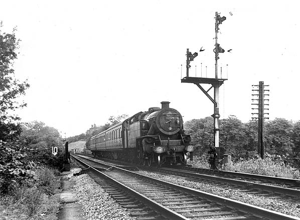 ![]() In August 1964 Southport shed's Stanier 2-6-4T No. 42675 crosses the East Lancs River Ribble Bridge and slows for Whitehouse West Junction, before veering right towards Southport with the 6.24 pm ex- Preston. This section of line, actually part of the originally East Lancashire Railway route to Blackburn, was built on a steep embankment over a mile long across the floor of the Ribble valley to beyond Whitehouse South Junction. After the cessation of WLR services, it continued to see both Liverpool and East Lancs traffic travelling via Todd Lane Junction, until 1 May 1972 when all services were diverted to the alternative but steeply-graded route via the West Coast main line and Farington Curve Junction, and Todd Lane Junction station (the old 'Preston Junction.) was closed completely.