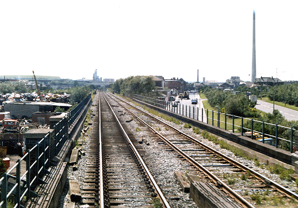 Looking west along the Widnes Deviation from the bridge that had spanned the St Helens and Runcorn Gap line on 22 June 1990.