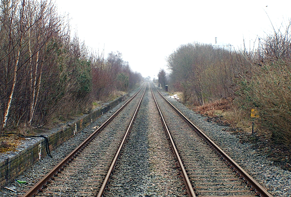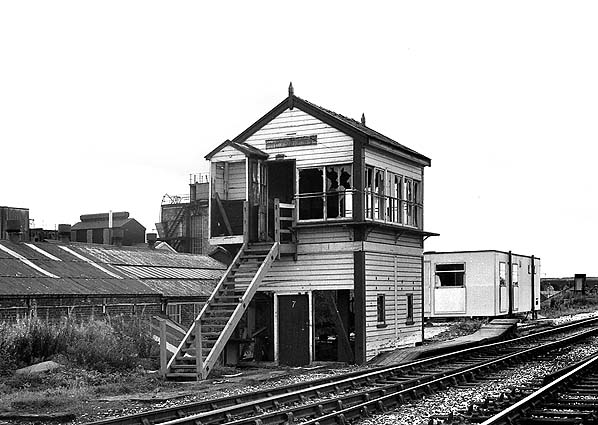 The Widnes Deviation line looking west from Widnes Junction in June 1982. Widnes No.7 signal box is out of use and has already had some of its windows smashed. The rails of the St Helens line are rusty and would shortly be removed.