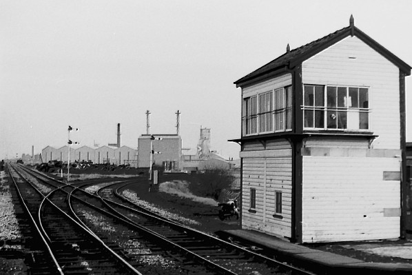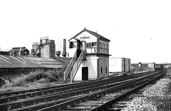 Looking west at Widnes No.7 signal box on 2 January 1982.