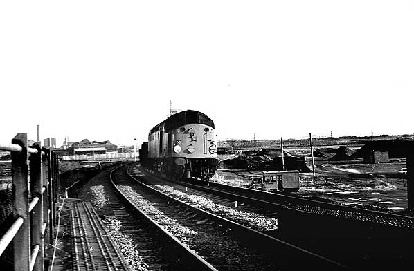 Looking west from the Tanhouse Yard connection towards the main line of the deviation on xxxx 1982.