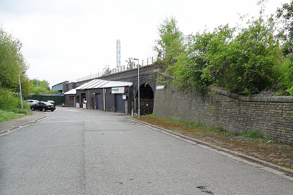 Going eastwards from Widnes No.7 the deviation line climbs at 1/150 towards the location of the St Helens line passing over Alforde Street on a small bridge after which there is a short section of embankment followed by a six arch viaduct. The route of the St Helens line between Ann Street crossing and towards Widnes No.7 has since the mid 1990s been occupied by a road (Watkinson Way). As the road is a dual carriageway the original bridge was demolished and replaced by a wider structure. |
