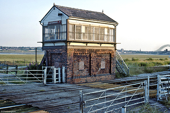 Carterhouse Junction signal box seen from the north side of the level crossing on 5 July 1989.