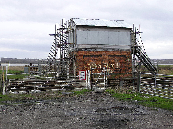 On 9 January 2005 Carterhouse Junction signal box was boarded up and held up by scaffolding.