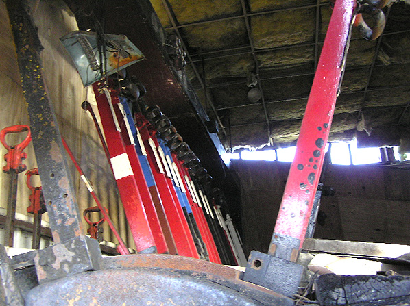 The lever frame of Carterhouse Junction signal box seen on 17 January 2007.