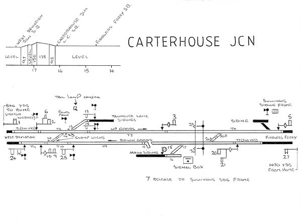 A box diagram for Carterhouse Junction as it was in 1987 drawn by Harry Gardner.