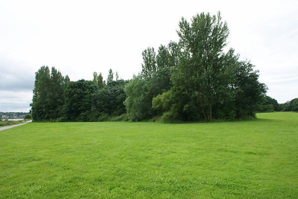 Looking south towards the Widnes Dock from the south side of the Sankey Canal at the location of the swing bridge in July 2012. Photo by Paul Wright