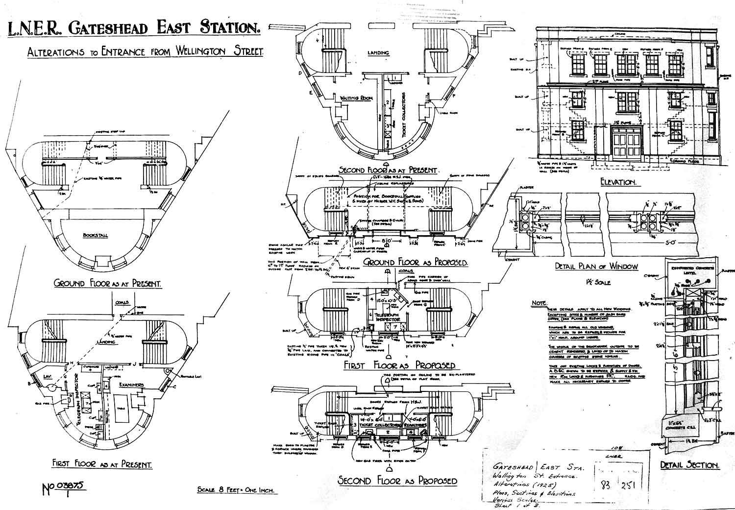 ![]() Architect’s drawings of the existing building entered from Wellington Street at its junction with Hills Street and proposed alterations (1925). Note that the Wellington Street entrance (although ‘aggrandised’: Fawcett, 2005, p 97) was never as elaborate as shown on this document. Only the top floor of the Bankwell Lane structure was ever intended for passenger railway use. Click here for an even larger version.