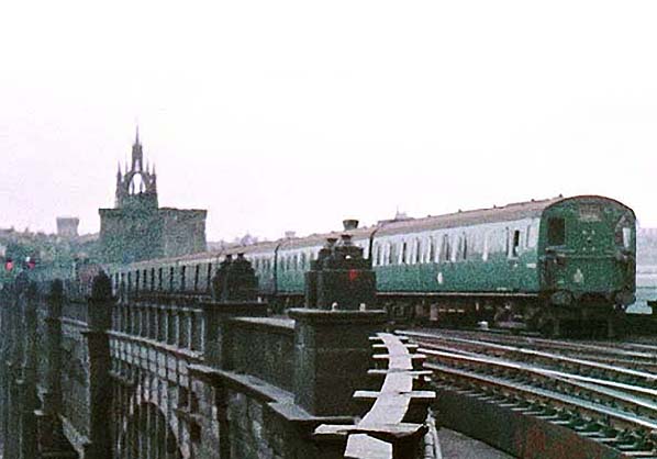 In 1960 an electric multiple unit is crossing the High Level Bridge and is about to enter the up platform of Gateshead East station. Fifteen of these twin electric sets were built at BR Southern Region’s Eastleigh works and entered service on the Newcastle – South Shields line in 1955; they replaced stock built in 1920-22 for the north Tyneside services which was cascaded onto the South Shields line when the latter was electrified in 1938. Following the abandonment of electrification on the south bank of the Tyne, and the introduction of DMUs in January 1963, the Eastleigh units saw their days out on the Southern Region.
