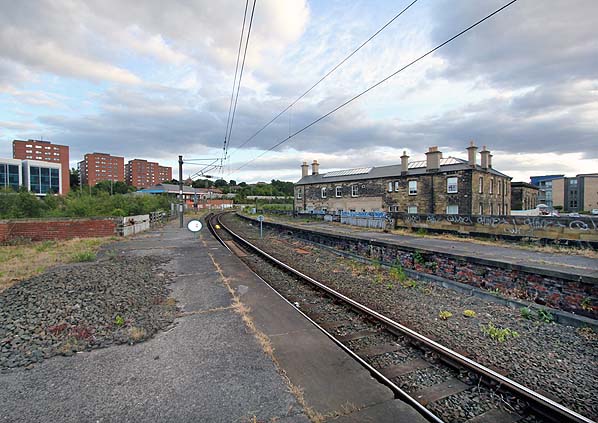 Gateshead West station, looking south-west from the former up platform in June 2011.