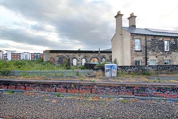 ![]() Looking west from the former up platform of Gateshead West station at the site of the former Gateshead Greenesfield railway workshop in June 2011. Photo by Nick Catford