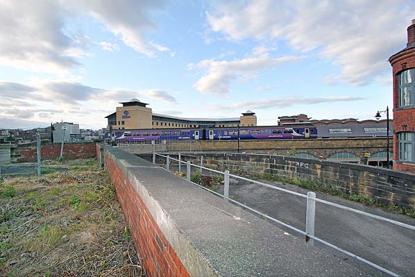 ![]() Looking north on Gateshead West station’s former up platform in June 2011. The station building used to be behind the camera. The approach road leading from Hudson Street is seen to the right. Photo by Nick Catford