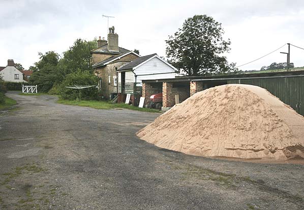 Gilling goods yard in September 2008. The coal drops are on the right with a wooden goods warehouuse in the centre.