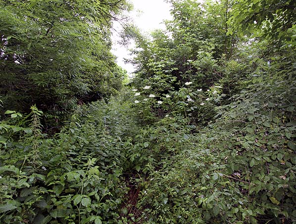 Glencorse station looking north in July 2011. The overgrown platform is to the right