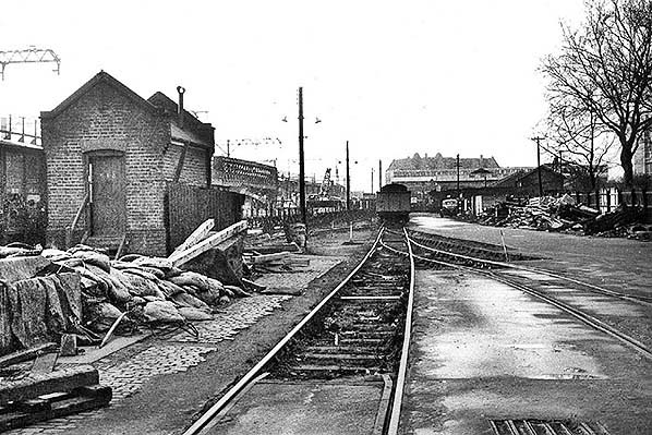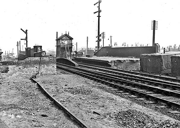 Photo from JE Connor collection ![]() Globe Road & Devonshire Street station during demolition in 1938, twenty-two years after closure. This view is looking east towards Stratford. Devonshire Street West signal box is seen; this was one of two signal boxes at the east end of the station, the other being Devonshire Street East box at the east end of the goods yard adjacent to the Regents Canal. In this scene the entrances from street level have already all but disappeared and a short section of up platform remains on the bridge; this section of platform was not covered by the substantial canopy. The entire station at track level would have gone within weeks of these photographs being taken. The photographer is standing on the widened viaduct provided in 1884 to accommodate the new station. Today all that is visible at track level is the widening of the viaduct to accommodate the down platform as seen here. Beyond the station the low level goods yard can just be made out on the left including one of the fixed yard cranes. The Great Eastern Railway was reputedly the first British main line railway company to install electro-pneumatic signalling, from 1899. The installations most often referred to were Bishopsgate and the Spitalfields area but it would appear that in 1938 such modernity was yet to appear at Globe Road. It was, however, during the 1930s that the LNER began to install such equipment on a wider scale but whether the cable conduit in the foreground has any connection with this is not known. The entire area from London into East Anglia was due to be switched to the new Rail Operating Centre (ROC) at Romford in November 2016 but was subject to delays and at the time of writing this remained the case. The wisdom, or otherwise, of controlling the entire national network from just a dozen or so ROCs remains to be seen.