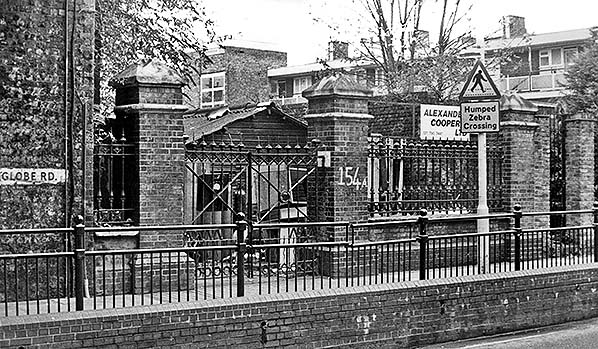 Photo by JE Connor ![]() The Globe Road entrance gates to Globe Road & Devonshire Street station c1990s.