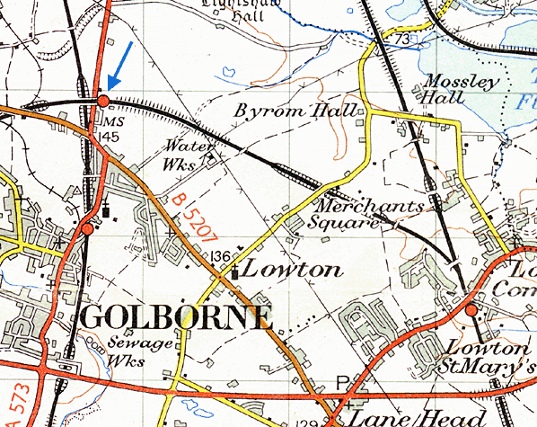 Notes: The station opened as Golborne and it was situated on the St. Helens Central to Lowton St. Mary's branch which left the Glazebrook to Wigan Central line at Lowton St. Mary's This line had been sanctioned as early as July 1885 and the original intention was to create a line that would link Wigan to Southport by creating a route from Lowton St. Mary's to Fazakerley Junction on the CLC North Liverpool Extension Line.