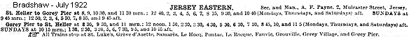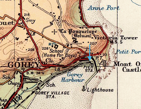 Notes: With the opening of the ferry service between Gorey and Carteret there was an immediate public demand for an extension to the Jersey Eastern Railway from passengers who had to walk half a mile from Gorey station to the ferry terminal. The company agreed to extend the line to Gorey harbour but the extension took a further twenty years to complete.