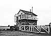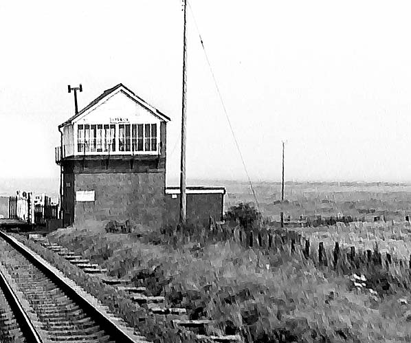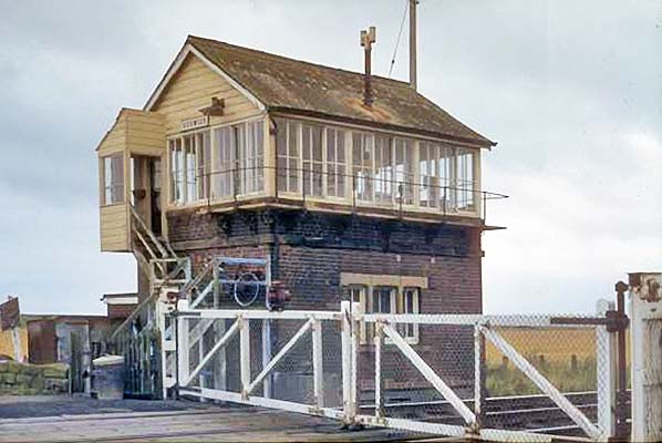 Photo by Alan Young ![]() Goswick signal box, looking east over the level crossing c1970s. The box would close in 1982.