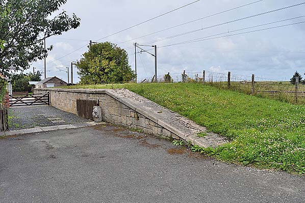 ![]() The former goods yard platform loading bank , seen in July 2015, is still well preserved at Goswick. It stands a few yards north-west of the old station house.