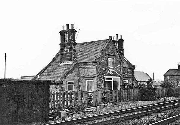 ![]() Station Name: GOSWICK![]() Goswick station house, looking west from the level crossing in September 1977. In the background, extreme right, the railway cottages provided by the NER can be seen. Windmill Hill Presbyterian church is visible between these buildings.