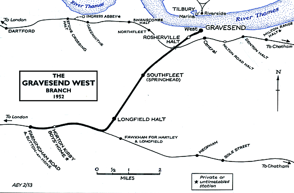 All trains were through to/from London and there were express services linking with river steamers to Walton on the Naze, Clacton and Southend.There were intermediate stations Southfleet & Betsham and Rosherville, a third intermediate station, Longfield Halt opened on 1.7.1913. Following
