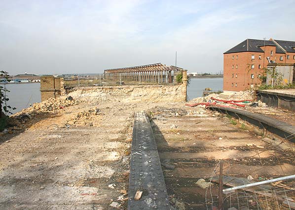 Looking north towards the pier from West Street bridge in September 2006. A short section of platform can be seen on the right. Photo by Nick Catford