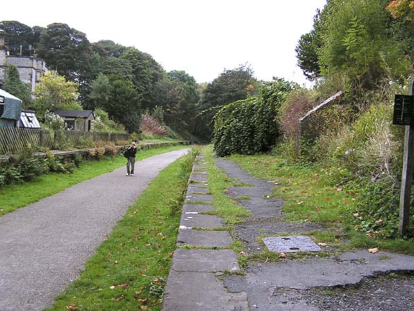 ![]() Looking west along the former southbound platform at Great Longstone Station in October 2009. To the left of the picture can be seen Thornbridge Hall the one time home of George Marples who was a director of the Midland Railway.