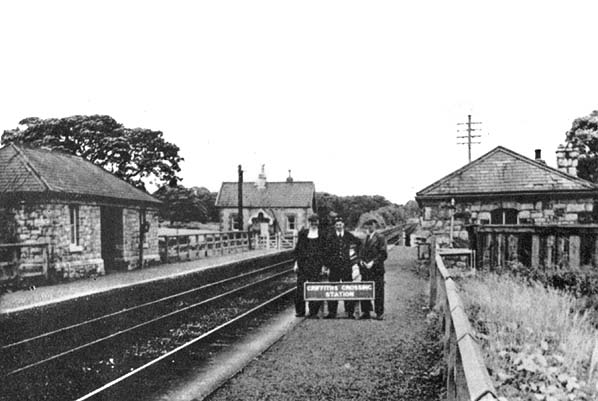 On 1 January 1923 Griffiths Crossing became part of the London Midland & Scottish Railway (LMS). The LMS summer timetable for 1932 showed only three trains to Caernarvon and one to Bangor Monday to Friday. On Saturdays there was an additional working both to Bangor and to Caernarvon. The sparsely populated catchment area of the station had made it unremunerative, and in its later years it was demoted to a halt. The LMS closed it to passenger services on 5 July 1937. The platforms and buildings were demolished shortly afterwards but the goods loading dock remained, as did the stationmaster’s house.