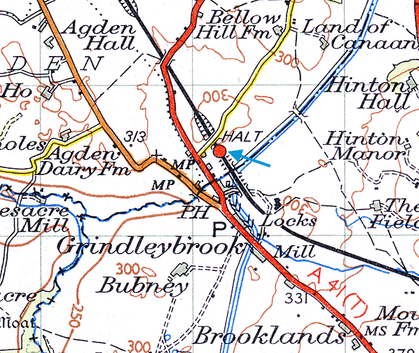 Grindley Brook was not one of the original stations opined with the line but was an unmanned halt added much later by the London Midland & Scottish Railway opening on 4th July 1937 and served by the local trains running between Chester and Whitchurch. The halt was located on the south side of an overbridge that crossed the line at this location. Steps led down to the platforms which were in a cutting from the overbridge; it is likely that the platforms were simple wooden affairs.