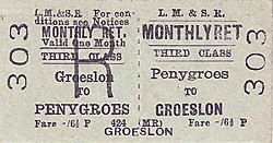 On 1 January 1923 Groeslon became part of the London Midland & Scottish Railway (LMS). By summer 1928 the LMS was running eleven northbound and ten southbound trains from Groeslon on Monday-to-Friday with a couple of extra services on Saturdays. There were no Sunday trains. The frequency remained the same in April 1932.