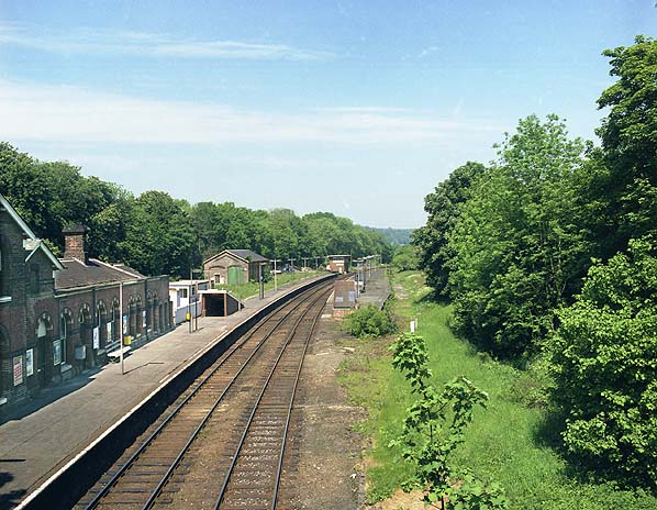 Groombridge Station looking north-east from Station Road in May 1985