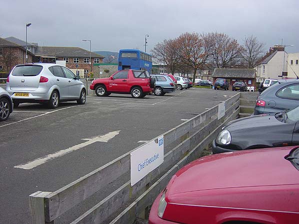 The site of Guisborough Station in November 2007 viewed from the platform area looking west showing the Coach Park to the left and car park to the right.