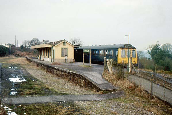Rationalisation started in 1966, freight traffic was withdrawn from Gunnislake on 28th February and on 27th June the sidings were closed, followed on 7th November by the withdrawal of all traffic between Gunnislake and Callington. The track at Gunnislake was then modified to leave just the loop either side of the island platform. DMUs from Bere Alston or Plymouth still arrived on the down/south-west face of the platform and then shunted forward before reversing to depart from the up/north-east face. Gunnislake continued, however, to be a block-post.