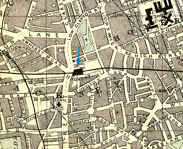 Notes: The original station at Hackney opened with the line. The station was resited to the west side of Mare Street and it is likely that the station was demolished shortly after resiting.