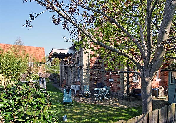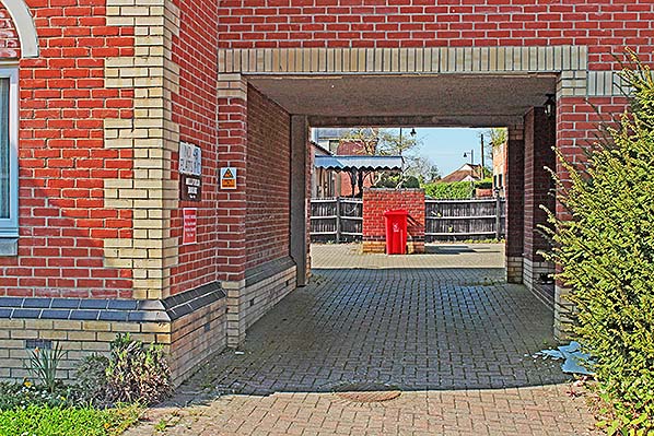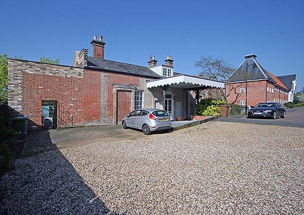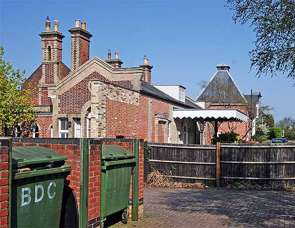 Photo by Aidan Kelly ![]() Looking north into Hadleigh station forecourt in October 2018. What was originally the front entrance to the station is now in the rear garden of the new residence. The small canopy is in the same place as the original canopy but it is a modern replica and doesn't actually look like the original canopy. The building in the background is new and stands on the site of Wilson's corn mill.