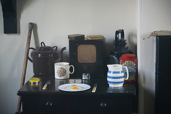 A 1950s scene recreated in the Hadlow Road station booking office as seen on 6 April 2013.