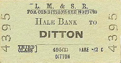 At Nationalisation on 1 January 1948 Halebank became part of British Railways London Midland Region. During the first summer of Nationalisation there were eight up and nine down trains from Halebank on Monday-to-Saturday.