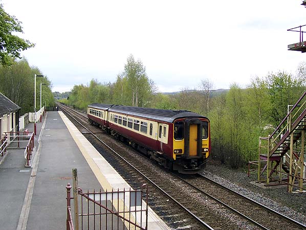 Carlisle bound DMU approaching Haltwhistle in May 2010. The junction with the Alston branch was behind the train.