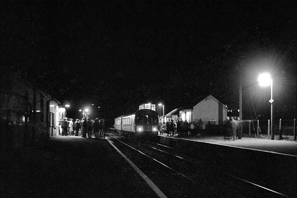 locomotive-hauled services. Photo by Roger Joanes ![]() On 1 October 1966 the last train on the North Cornwall Line has arrived at Halwill and will shortly continue to Okehampton and Exeter. The train is formed of two single-unit diesel railcars, that leading being a Gloucester RC&W Class 122. This train was 18:40 ex-Wadebridge, from where it departed as a single-unit. The second unit was attached at Launceston. There were two short journeys between Halwill and Launceston; 07:48 ex-Launceston and 19:00 ex-Halwill but precisely what this train did overnight is unclear. It either stabled overnight at Launceston, or ran empty to depot then returning empty to Launceston the following morning, or, as happened on the final day, returned to Exeter by attaching to the 18:40 ex-Wadebridge and then running empty stock to Launceston the following weekday morning - post last day obviously excepted. Only the relevant working, as opposed to public, timetable would answer this question and we do not have a copy of this. Whatever the answer, we know that on the final day the unit operated the 19:00 ex-Halwill, arriving Launceston 19:21, then was attached to the 18:40 ex-Wadebridge at Launceston at 19:45. The ensemble than arrived Halwill 20:08 and this was the end of the North Cornwall Line from Wadebridge. The final down train to Wadebridge was the 16:50 ex-Okehampton, arriving Wadebridge 18:34, returning with the 18:40 departure. Meanwhile the last train from Bude had departed the latter at 19:35 and was due to arrive Halwill 2013. On doing so it coupled to the waiting 20:08 arrival from Wadebridge and at 20:19 the expanded ensemble rasped away to Exeter Central where it was due to arrive 21:36. Once it passed Meldon Junction and reached Okehampton at 20:46 this was the end of the railway through Halwill insofar as the public were concerned. When a railway closed, after the final passenger train, or goods as the case may be, photographers and enthusiasts usually considered it to be the end and turned their backs. However, in most cases the rails were polished once again as the demolition trains arrived to perform their work and these were the very last trains over the lines concerned but regretfully few photographers bothered to record them and this appears to have been the case with Halwill. A common scenario was contractors using their own small diesel locomotive with loaded trains of materials being taken away by BR. For example, the ex-GWR route through Launceston was lifted in this way with contractors using a Fowler diesel of the same type as BR's ED2 - 6 and with loaded trains removed at intervals by BR. Photographs of demolition trains at Launceston (GWR) exist as does a single and very unclear photograph said to be of the Padstow demolition train but that would appear to be it insofar as the area in question is concerned.