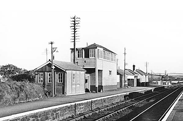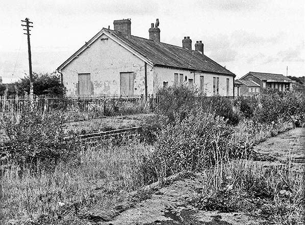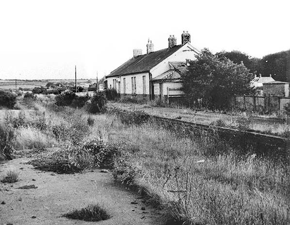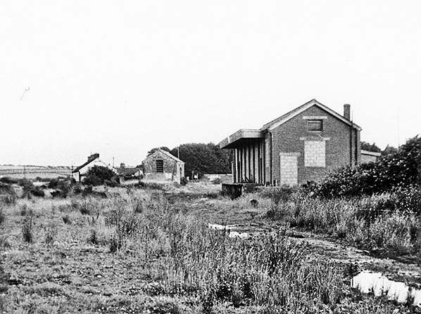 Photo from John Mann collection ![]() The main station building at Halwill seen from the up platform in 1975. The slaughterhouse is seen in the background.