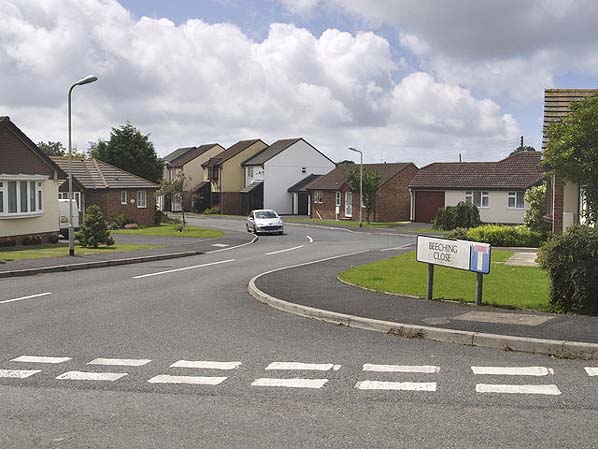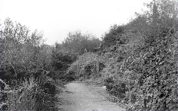 Photo by John Mann ![]() The site of Halwill station looking across the site of the platforms in July 2007 (see plan. The entrance to Beeching Close is roughly where the signal box was sited.