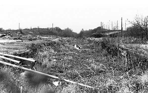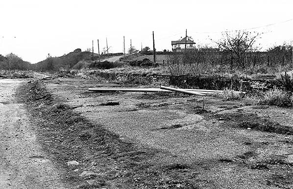 Photo by John Mann ![]() Halwill station looking north in November 1988; the down bay platform is seen in the foreground. All the edging has been removed prior to final clearance of the site.
