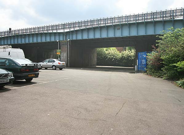 ![]() Station Name: HAMMERSMITH & CHISWICK The bridge carrying the former LSWR Kensington - Richmond Line (now the District Line) over the Hammersmith & Chiswick branch. Looking south towards Hammersmith & Chiswick Station
