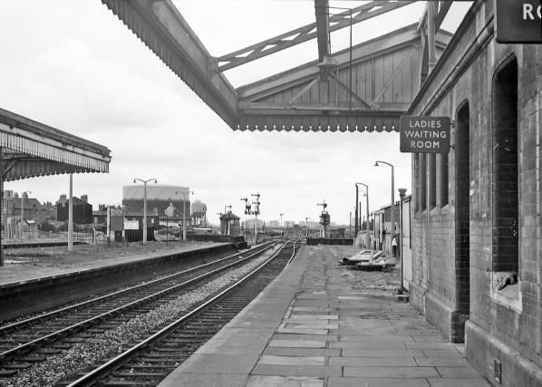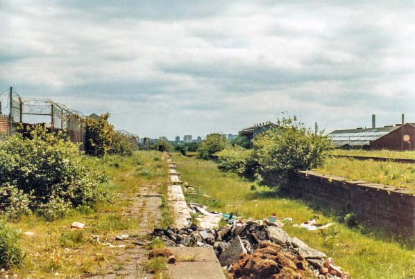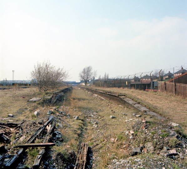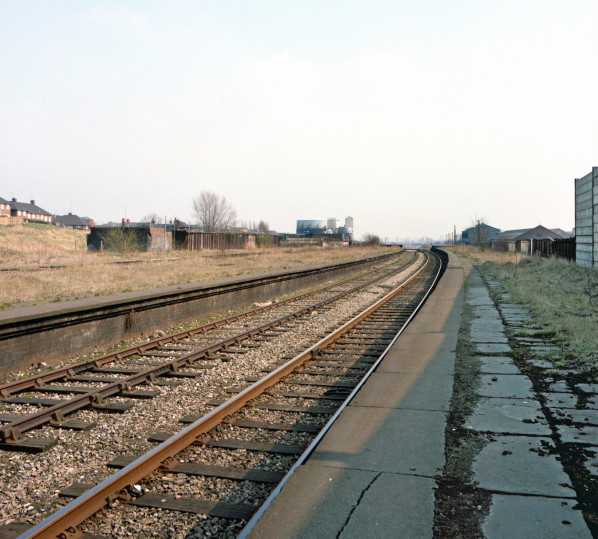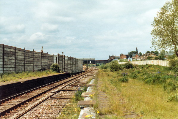 Photo by Martin Beddall ![]() The rusting remains of the trackwork at the Birmingham end of the station in August 1983. Photo by Martin Beddall ![]() The remains of the main line platforms seen during the winter of 1984, viewed from the Birmingham end of the station. Note the GWR spearhead fencing still in-situ on the right hand side. Photo by Nick Catford ![]() Looking towards Birmingham along the down relief platform in the winter of 1984. The polished rails of the former down relief line show traffic, to the cement terminal and scrap yard, is still frequent. Photo by Nick Catford ![]() Looking in the Wolverhampton direction along the relief lines in the winter of 1984. Photo by Nick Catford ![]() Looking towards Birmingham along the up main platform remains on 8 June 1986. Several of the platform edging stones have been removed as happened at several stations along the route following closure. Photo by Martin Beddall ![]() Looking towards Wolverhampton along the island platform on 8 June 1986. The up relief line has been partially lifted with the down relief line accomodating the remaining traffic. Photo by Martin Beddall ![]() Looking towards Wolverhampton from the down relief platform in the late 1980s. It is quite hard to believe this was once a thriving quadruple main line. Photographer unknown To see more pictures of Handsworth click here