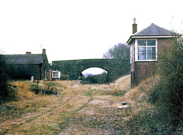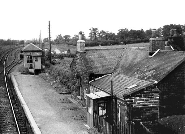 The station had two short platforms with a single-storey L-shaped building comprising the booking office, waiting room and stationmaster's house located on the up side. A signal box at the north end of the up platform controlled access to the goods yard which was sited on the up side north of the station. The yard comprised a single siding with a loop but no goods shed. There were a weighbridge and weigh office alongside the access road running from the station forecourt.