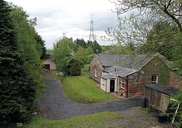 Two miles south of the summit in the 'middle of nowhere' the NBR built what was to become one of the most famous junction stations in Britain in the heart of the Lees Bog. Prior to the railway, apart from a remote shepherd’s bothy, there were no buildings or inhabitants in the area, but the railway brought its own community in the form of Riccarton railway village comprising terraced housing, a shop on the station platform, a school and a three-road engine shed with room for six locomotives; a two-road carriage shed, two signal boxes, a gas plant, turntable and coaling facilities were also provided. At Riccarton, the line made a junction with the Border Counties line extension running through Reedsmouth and Bellingham to the Tyne Valley line at Hexham.